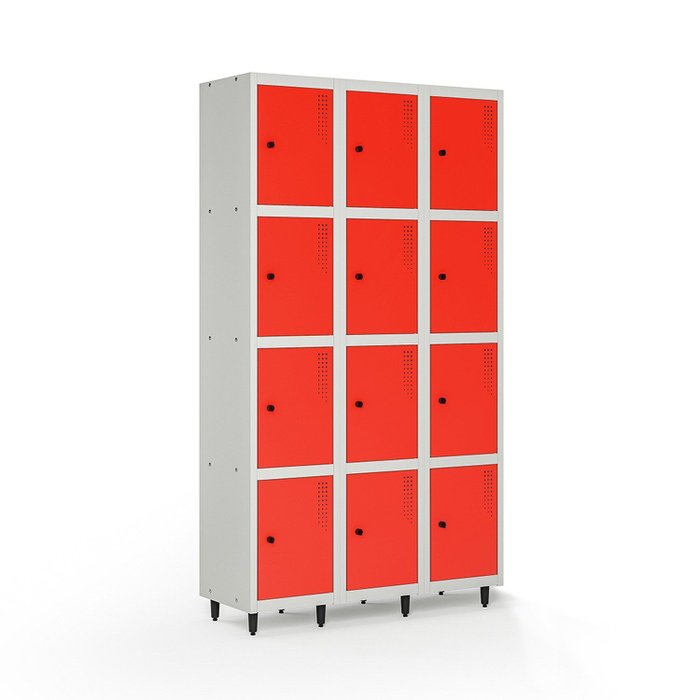 Fabricado em chapa de aço nº 26 (0,045cm), o roupeiro conta com 12 portas individuais, tratamento anticorrosão e pintura eletrostática a pó.