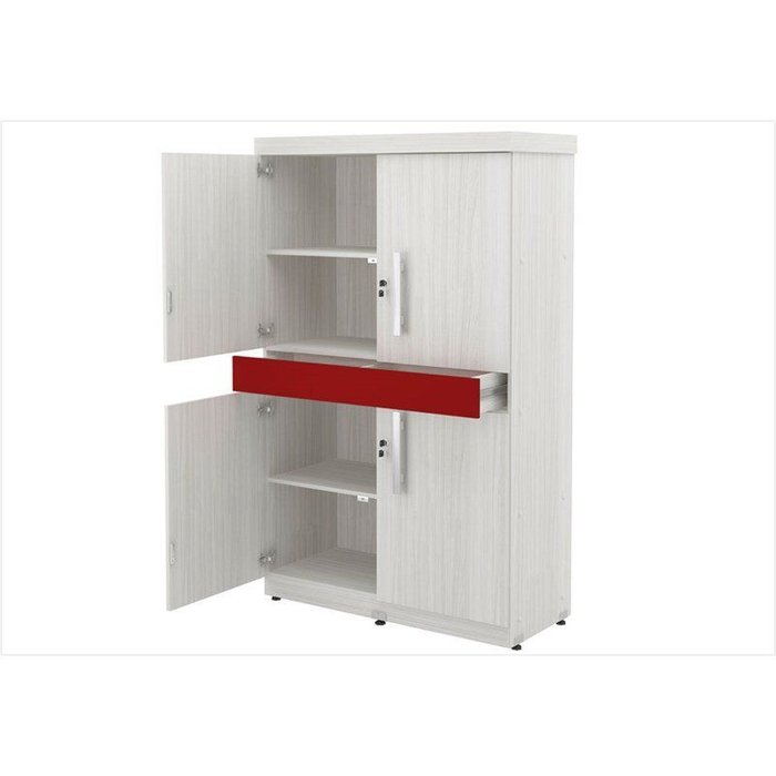 GRANDEO Armário Mega 04 Portas é ideal para guardar pastas e documentos deixando seu ambiente mais organizado e decorado com suas 4 portas e gaveta colorida, estrutura de excelente qualidade confeccionada 100% em MDP BP e acabamento nas bordas em ABS que proporciona maior resistência e durabilidade ao produto. Aproveite e leve para sua casa!