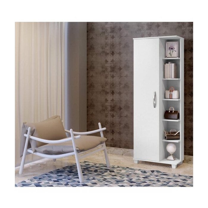 Armário Multiuso 1 Porta 5 Prateleiras com Nicho Londres Arte Moveis Branco
