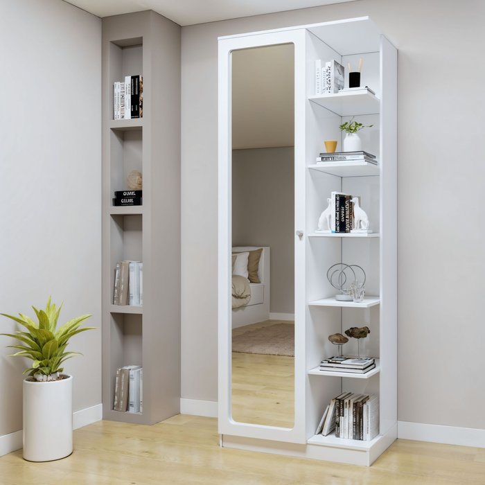 Armário Multiuso 1 Porta com Espelho João Pessoa Branco