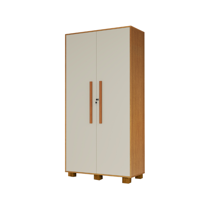 Armário Multiuso 2 Portas 10 Prateleiras Internas Sala Quarto Lavanderia Naturale/Off White