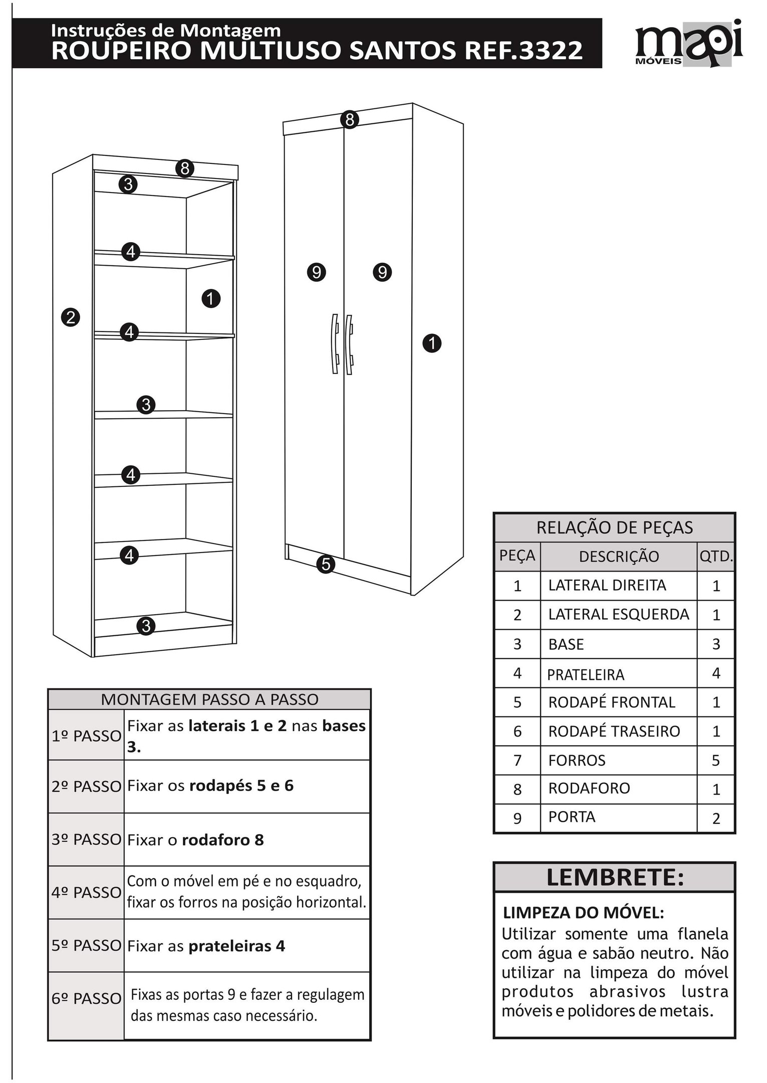 O Armário Multiuso Santos da Marafon Móveis possui amplo espaço interno, com 5 prateleiras. É perfeito para sua área de serviço, cozinha, quarto ou até mesmo o armário pode ser utilizado como sapateira. Produzido 100% em MDP, possui 2 portas, pintura UV, puxadores em ABS metalizados e sistema de montagem com parafusos e buchas cilíndricas.