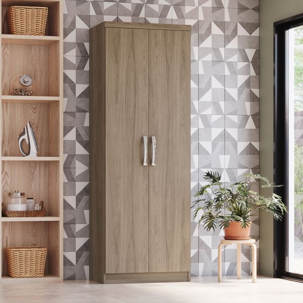 Roupeiro multiuso Happy é a opção ideal para organizar roupas ou objetos, ele pode ser utilizado no quarto, na área de serviço ou na despensa. Composto por 2 portas com amplo espaço interno, possuindo 6 prateleiras. A estrutura é produzida em MDP e MDF com revestimento em pintura UV, interno no padrão trama, que imita tecido, o que garante um móvel resistente e durável. As dobradiças são metálicas para proporcionar maior firmeza na hora de abrir e fechar as portas. Possui altura de 1. 800 mm, largura de 610 mm e profundidade de 340 mm. Os puxadores são de ABS cromado. Compacto e com um design discreto, o Happy mantém sua casa ainda mais organizada e completa.