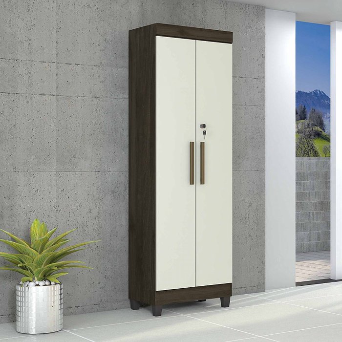 Armário Multiuso 2 Portas com Chave Baião Magno Móveis Canela/Off White