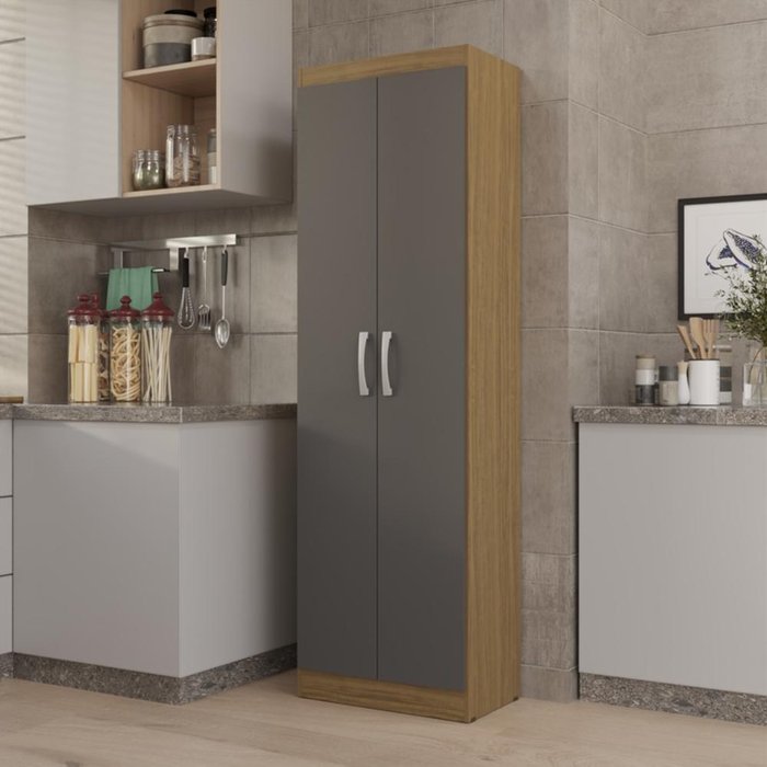 Armário Multiuso 2 Portas e 3 Prateleiras Internas Macau 170cm - Chumbo Marrom/Cinza