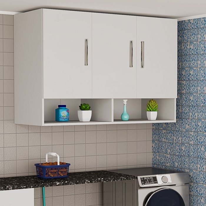 Armário Multiuso 3 Portas com Nicho Suspenso Mdf Resistente Branco