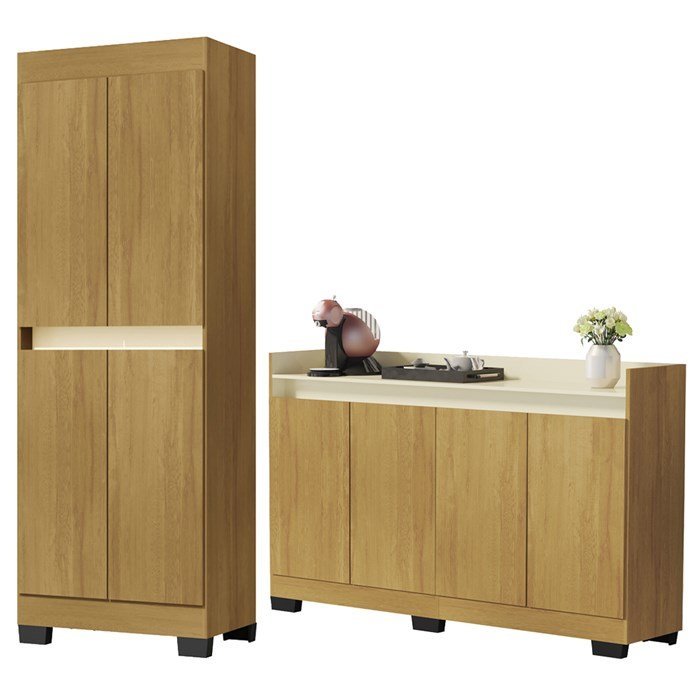 Armário Multiuso 4 Portas E Aparador Balcão 4 Portas GA106RE102, moderno e muito versátil para acrescentar beleza e comodidade à seu ambiente. Estrutras em MDP de 12 mm. Pintura, texturas e combinações de cores exclusivas. O armário possui 04 portas e prateleiras internas, o aparador conta com 04 portas e 02 prateleiras internas. Ambos possuem dobradiças metálicas, portas com frente passante, dispensando o uso de puxadores e garantindo um visual mais clean, além de base com pés em plástico resistente. Conjunto ideal para seu escritório ou sala de estar, com certeza irá valorizar seu ambiente com classe e bom gosto. Estes produtos chegarão na sua casa separados em 02 volumes.