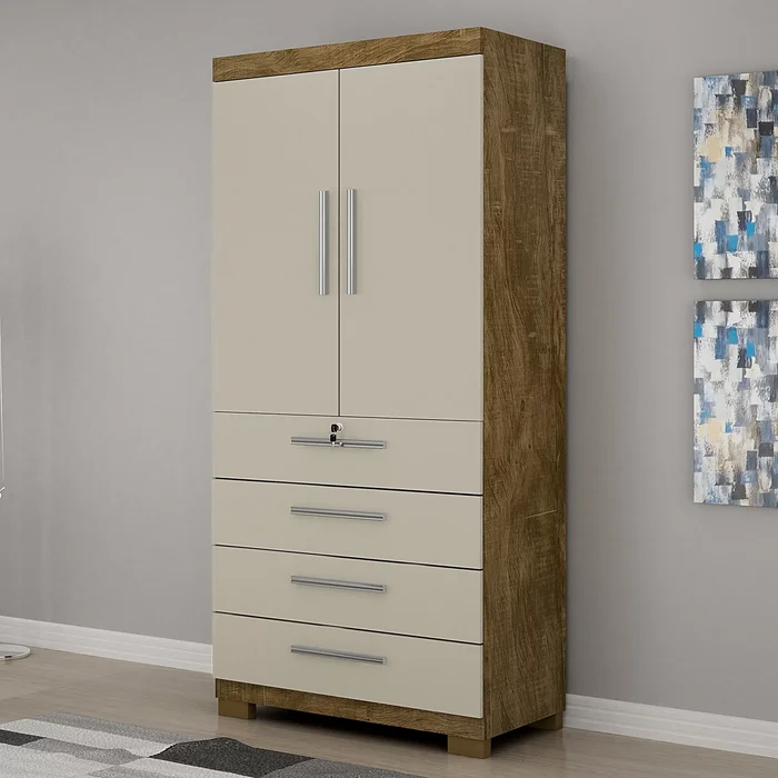 Armário Multiuso Camiseiro 4 Gavetas Verona Valdemoveis Ipê/Off White