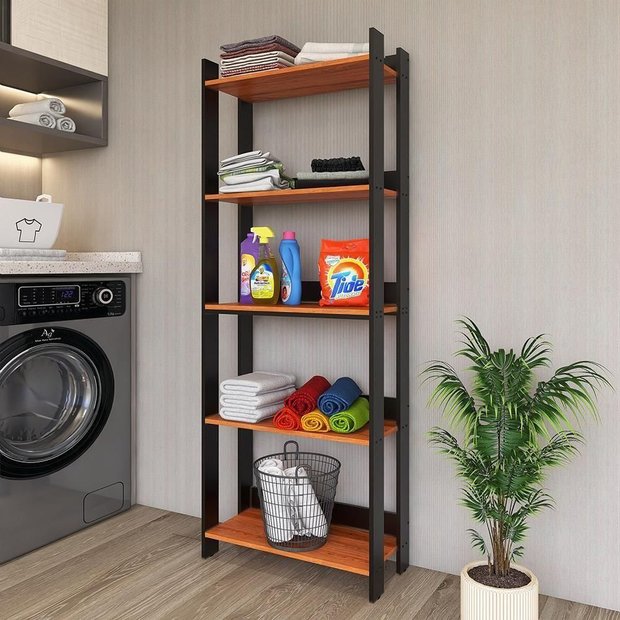 Armario Multiuso Com 5 Prateleiras Organizador Lavanderia Preto / Nature Preto / Nature