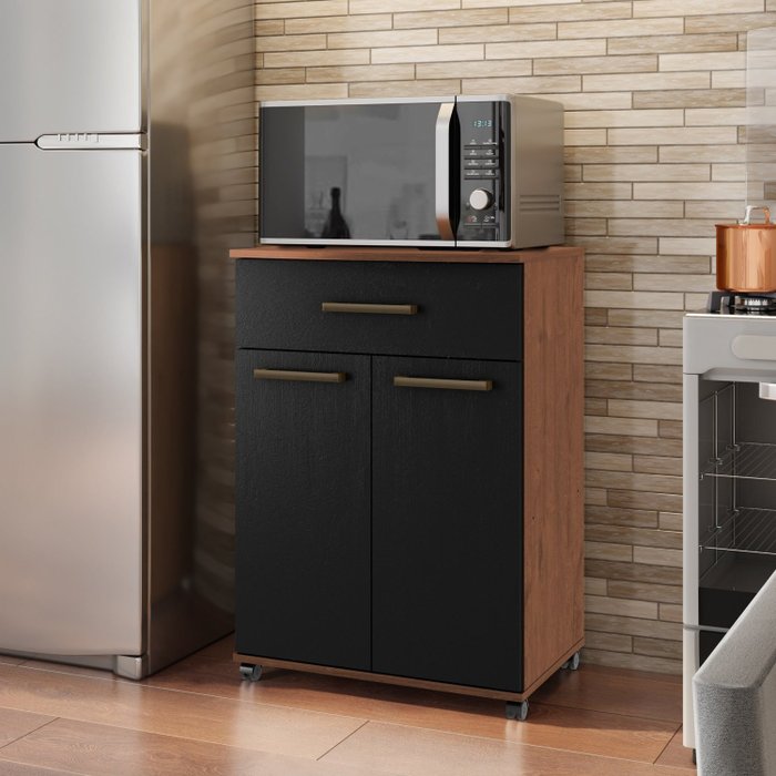 Armário Multiuso com Rodízio 2 Porta 1 Gaveta Primor Natura/Preto