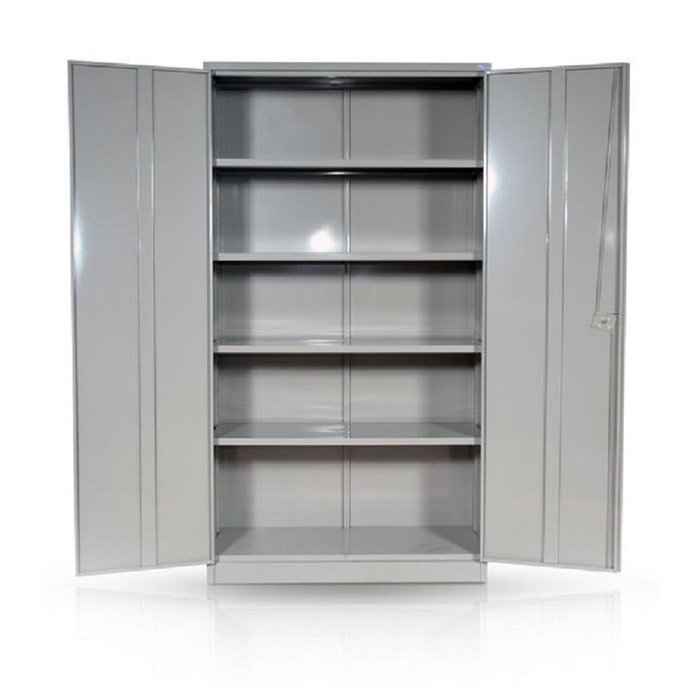 Produzido em Aço de alta qualidade com tratamento anti-ferruginoso, em ""CHAPA 26"", possui 02 Portas de Abrir com fechadura com duas chaves, 04 (Quatro) prateleiras resistente a 20kg (distribuídos por prateleira).O acabamento em sistema de pintura eletrostática a alta temperatura a pó (epóxi) também garante maior durabilidade da cor e resistência à ferrugem.