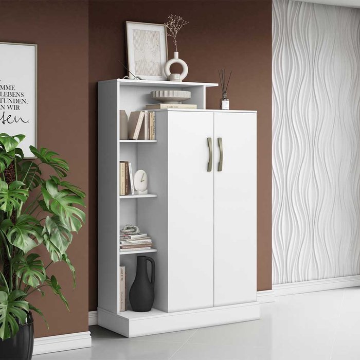 Armário Multiuso Florença 2 Portas com Verniz Texturizado Aramóveis Branco