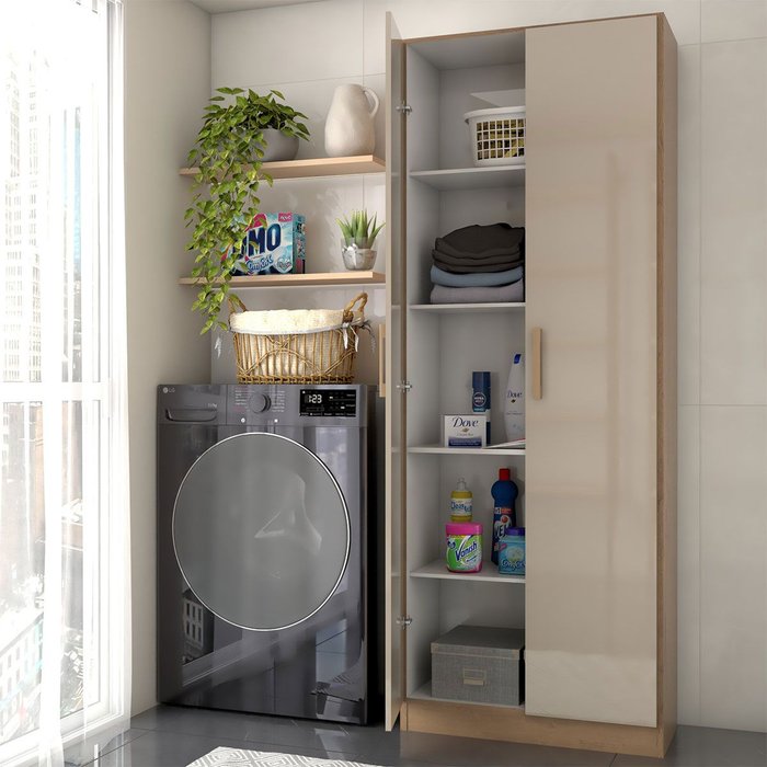 Armário Multiuso Malta 2 Portas 4 Prateleiras Acácia Madeirado/reflecta Brilho - Panorama Móveis