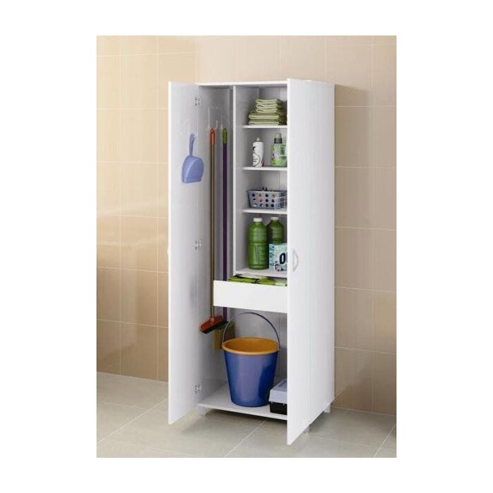Armário Multiuso Maringá com 67,5 cm de Largura, estrutura em MDP de qualidade, com ganchos para vassoura, portas com dobradiças metálicas, prateleiras fixas que suportam até 5 kgs bem distribuídos, com rodízios, gaveta com corrediças metálicas, produto da marca Politorno.