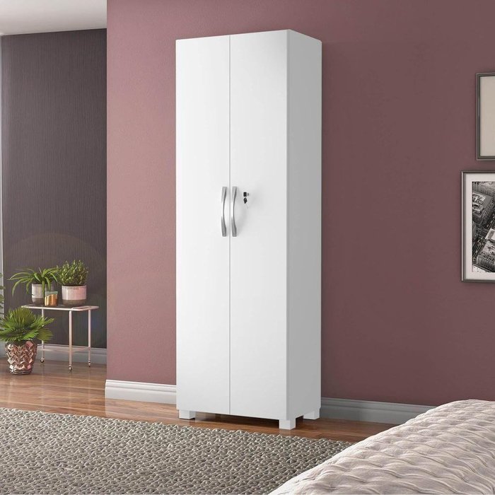 prateleiras bem distribuídas e espaçosas para organizar seus pertences, além de conter fechadura para armazenar tudo com segurança.