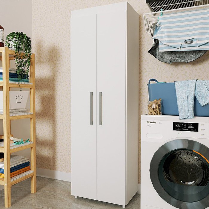 Armário Multiuso Para Lavanderia Floripa com 6 Prateleiras e 6 Nichos DRD Móveis Branco Perfect Wood