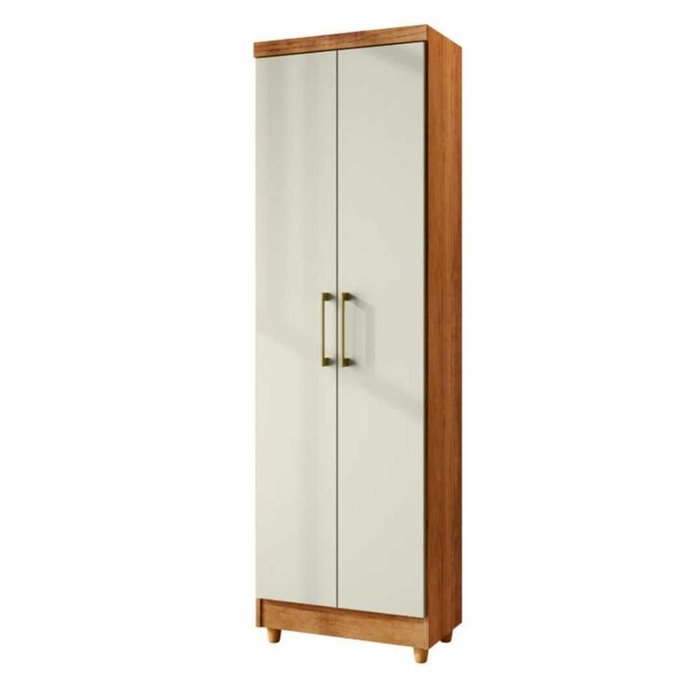 Armário Multiuso Sapateira 2 Portas 5 Divisórias Compacto Cedro Areia Branco