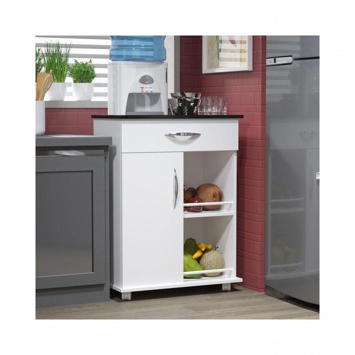 Armário Balcão Fruteiras Base Microondas Branco Bebedouro Lindo Balcão com fruteira para complementar os móveis da sua cozinha. Altura: 0,71m Largura: 0,60m Profundidade: 0,34m Rodízios - Rodinhas brancas Garantia de 3 meses para defeitos de fabricação Características Cor: branco com preto IRÁ Com Garantia e Nota Fiscal