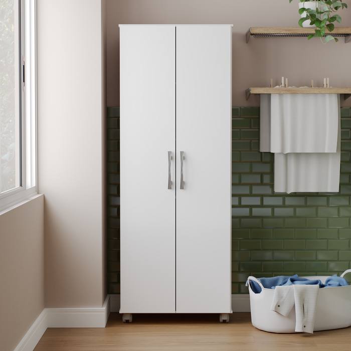 Armário Multiuso Suporte Vassouras Organizador Roma Yescasa Branco