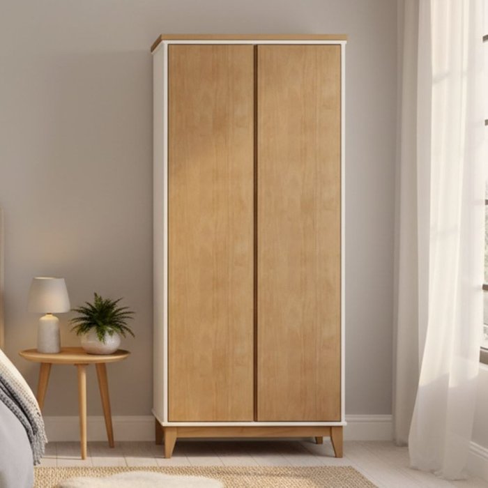 Armário Organizador 2 Portas MDF e Madeira Maciça Linha Prata Off White/Freijó