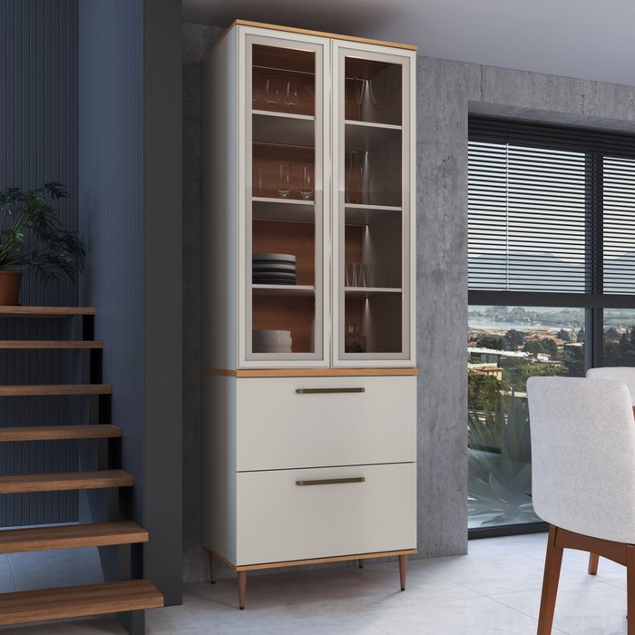 Armário Paneleiro 2 Portas 2 Gavetas Vidro Fume Isabelle Freijó/ Arenas