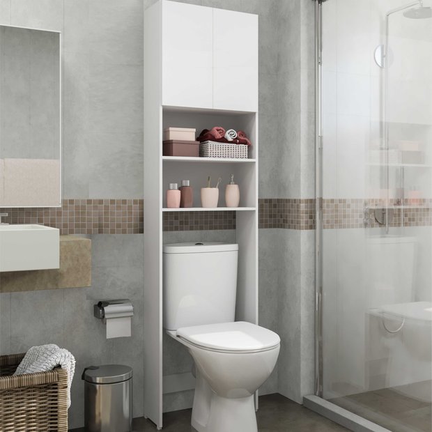 Foi pensando no seu dia a dia e na realidade de muitos banheiros, que criamos a solução ideal para que você possa organizar seu banheiro de maneira fácil e prática. O armário de banheiro para vaso sanitário ocupa um espaço que até então ficava inutilizável em seu banheiro. Desenvolvido especificamente para vasos sanitários com caixa acoplada, ele possui a profundidade ideal para se adaptar em cima do seu vaso sanitário. Com 2 portas e 2 prateleiras possui espaço para guardar todos os seus produtos de higiene, toalhas e acessórios. Para maior segurança, recomendamos que o móvel seja fixado na parede.