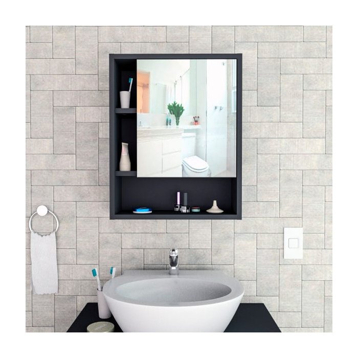Armário para Banheiro com Espelho Slim Preto e Castanho Appunto