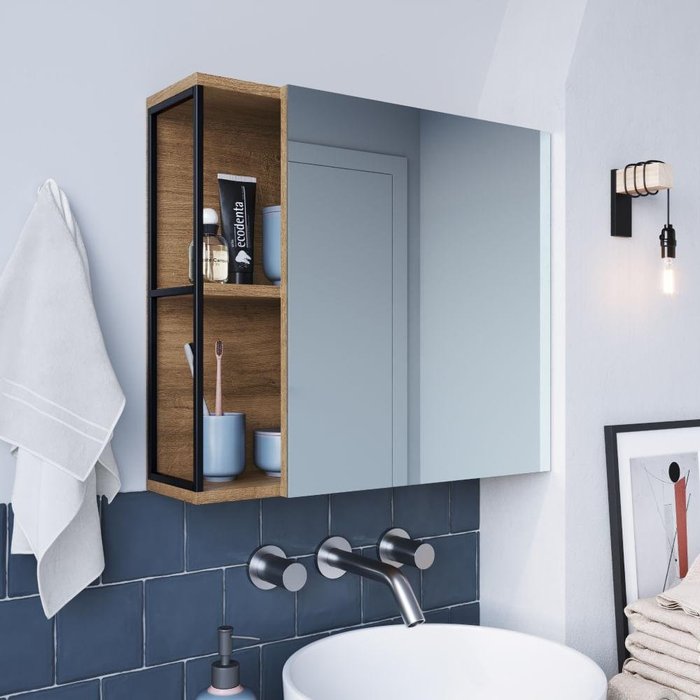 Armário para Banheiro Industrial com Espelho e 2 Nichos - Preto/Mel