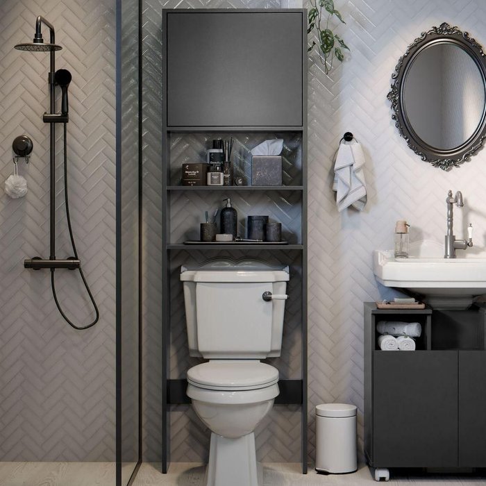 Armário para Banheiro Torre Porta com Pistão Abertura para Vaso Preto