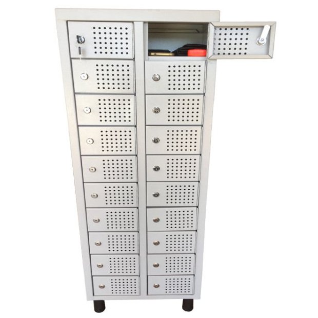 Armário para celular 20 portas com chave fabricado em chapas de aço 0,45mm chapa de aço tratada com antiferruginoso por fosfatização e pintura epóxi-pó por processo eletrostático, armário confeccionado pela empresa schier móveis