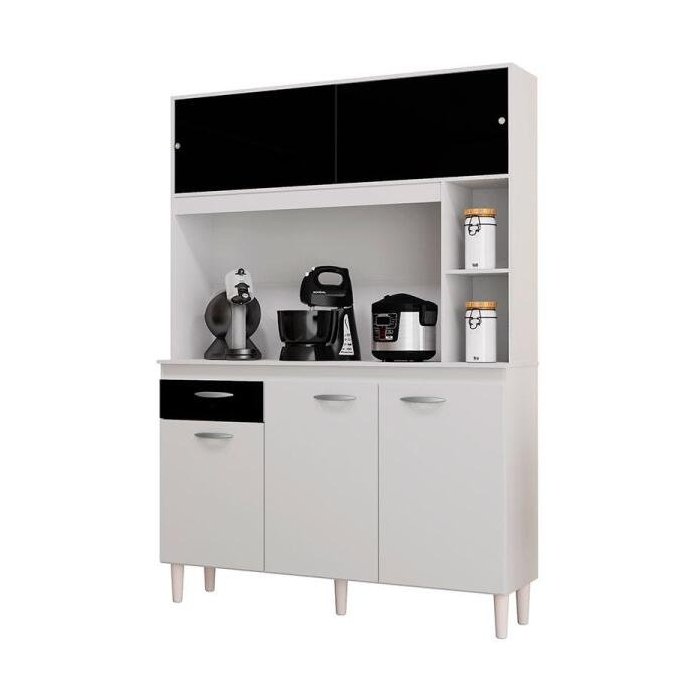 Armário para Cozinha 1,20cm Duda-Poquema - Branco / Preto