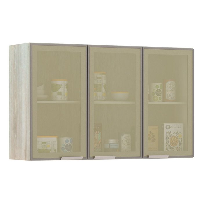 Armário para Cozinha 120 Cm 3 Portas com Vidro Reflecta Bronze Luci Luciane Móveis Legno Crema