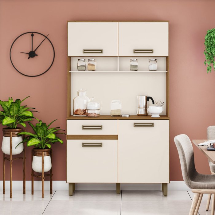 Armário para Cozinha 3 Portas com Tampo Briz Nature/Off White
