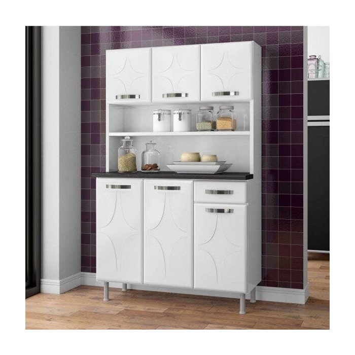 Composta por armários, gavetas, prateleiras, balcão para pia, oferece tudo o que é necessário para ter uma cozinha completa.