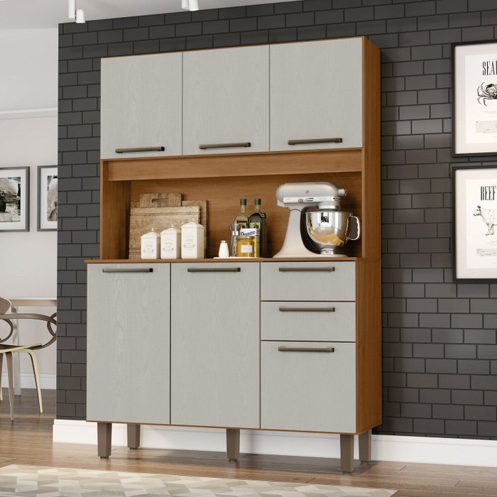 Armário para Cozinha 6 Portas 2 Gavetas 120cm Cinamomo/Areia