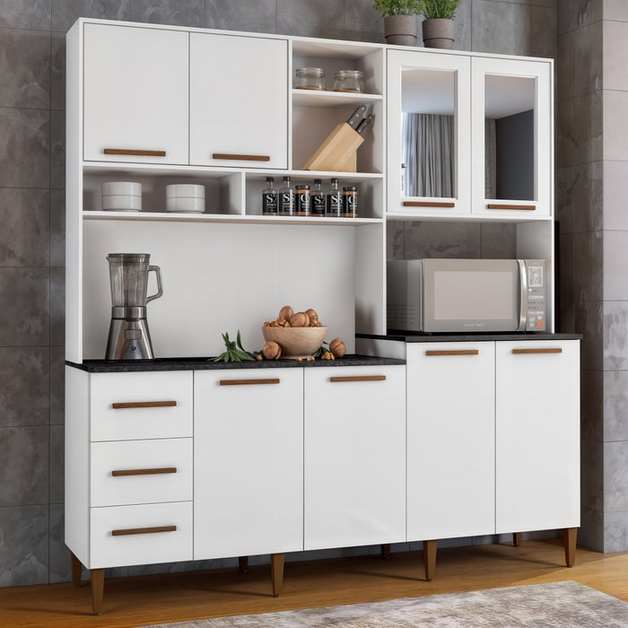 Armário para Cozinha 8 Portas 3 Gavetas Rio De Janeiro com Vidro Reflecta