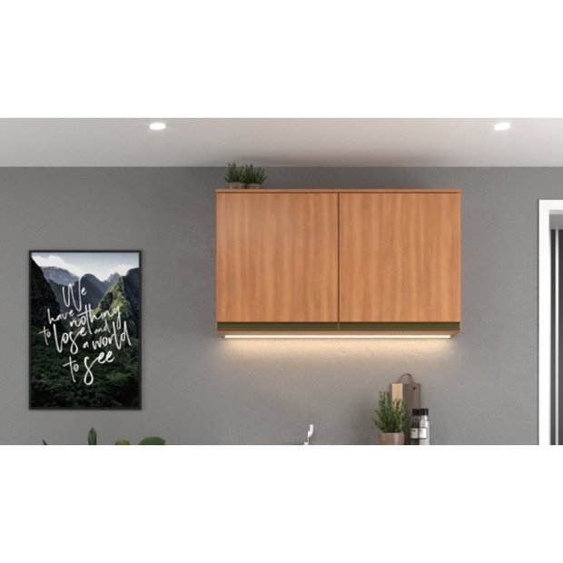 Aéreo multiuso 2 portas Com suas medidas A:69,5 X L:120 X P:32 pode ser utilizado em vários ambientes tais como; cozinha, lavanderia e área de serviço garagem e entre outros. Possui duas portas de bater com dobradiças metálicas material todo em MDP 15 mm com acabamento Finish Foil, puxadores embutido na cor bronze.