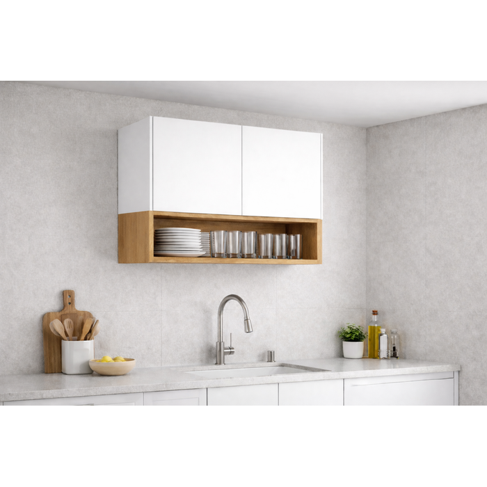 Armário aéreo moderno para cozinha, ideal para organizar utensílios e decorar o ambiente.
