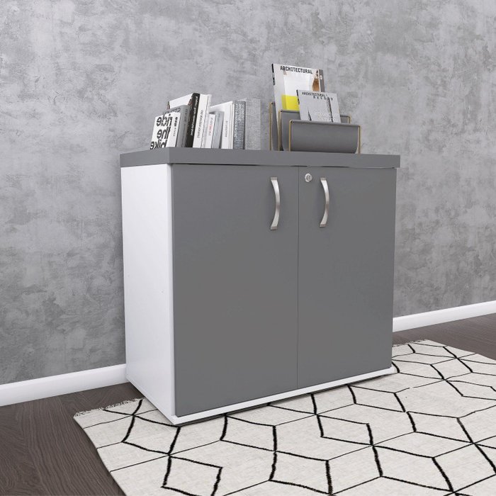 Armário para Escritório 2 Portas com Chave Branco/Grafito