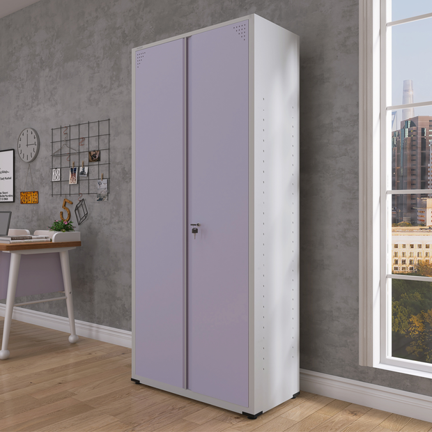 Armário para Escritório 2 Portas com Chave Aço 4 Prateleiras Cinza/Lilás