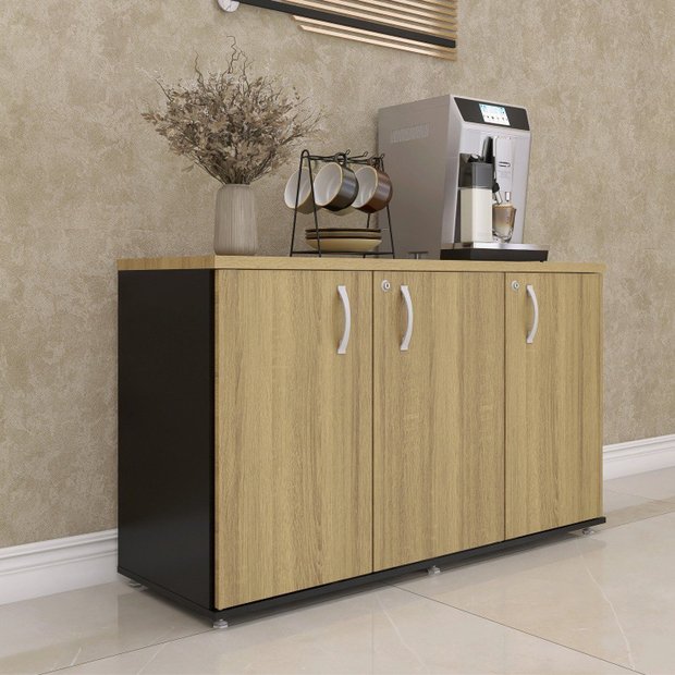 Armário para Escritório 3 Portas Credenza Preto/Samba