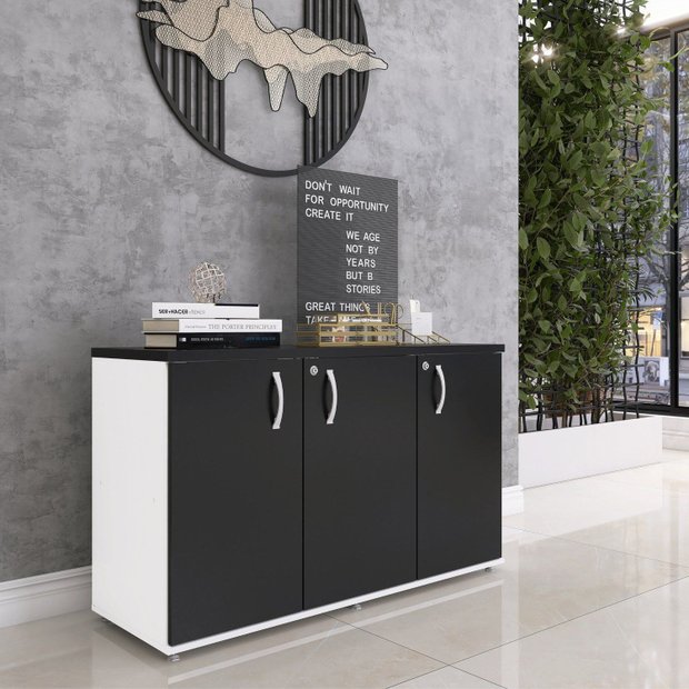 Armário para Escritório 3 Portas Credenza Branco/Preto