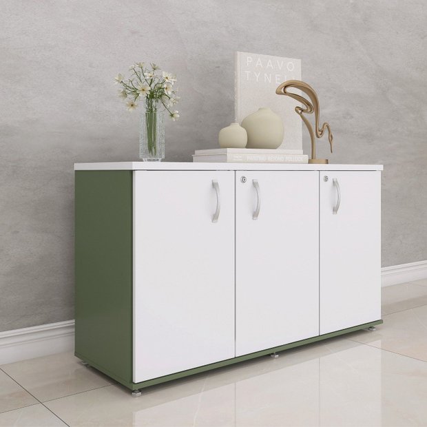 Armário para Escritório 3 Portas Credenza Salvia/Branco