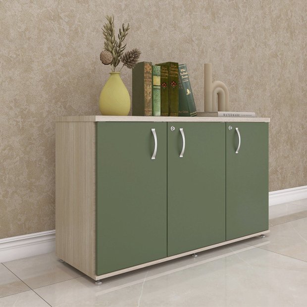 Armário para Escritório 3 Portas Credenza Castanheira/Salvia