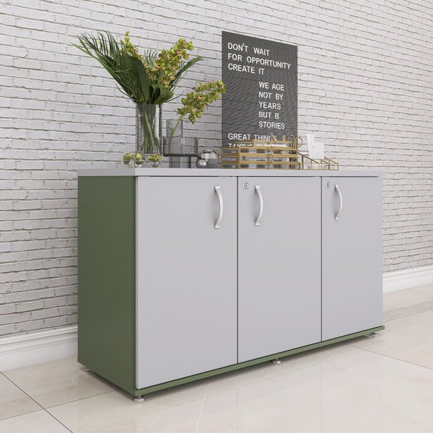 Armário para Escritório 3 Portas Credenza Salvia/Cinza