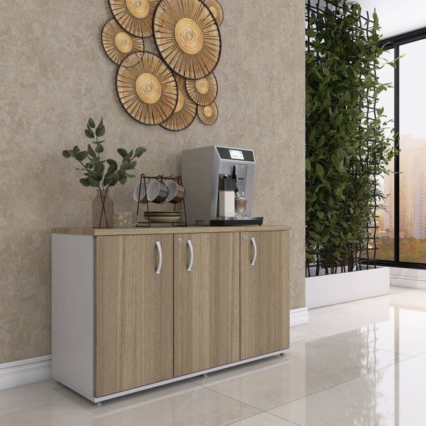 Armário para Escritório 3 Portas Credenza Cinza/Noce Naturalle