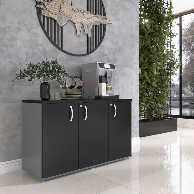 Armário para Escritório 3 Portas Credenza Grafito/Preto