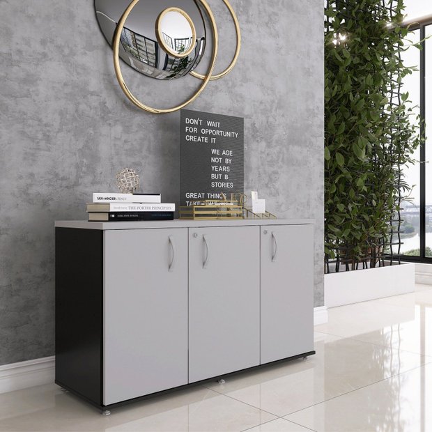 Armário para Escritório 3 Portas Credenza Preto/Cinza