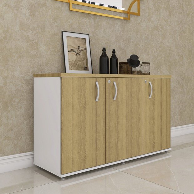 Armário para Escritório 3 Portas Credenza Branco/Samba