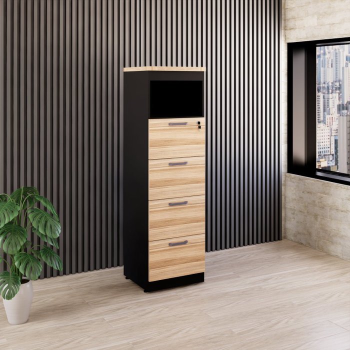 Armário para Escritório Arquivo 4 Pastas 1 Nicho Espresso Móveis Calvi/Preto